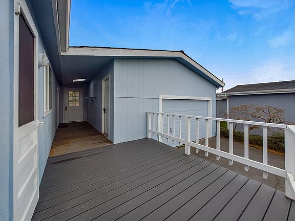Welcome to this light and bright turn-key home in one of Humboldt's most sought-after 55+ communities, Ocean West! Enjoy the coastal feel of this well maintained home with fresh brand new carpet, interior paint, luxury vinyl plank flooring, gas range and vent hood! Vaulted ceilings and skylights help bring in lots of natural light. The primary bedroom is spacious, has a walk-in closet, and a large ensuite bathroom with separate vanities, providing plenty of storage. The 2nd bedroom has a sliding glass door out to its own private deck. Extend your dining space outdoors with the newer Trex-style, south-facing front deck, where you can plant your herb garden, or star-gaze on a clear night with a patio heater to keep you warm. The office/den/craft room is located off the living room and close to the main bathroom, which flows perfectly into the laundry/utility/mudroom. This home includes an oversized 1 car garage with lots of storage cabinets, a work bench, 2nd refrigerator, and covered entry into the house to keep you safe and dry from the elements. All appliances are included! Don't miss out on this one!