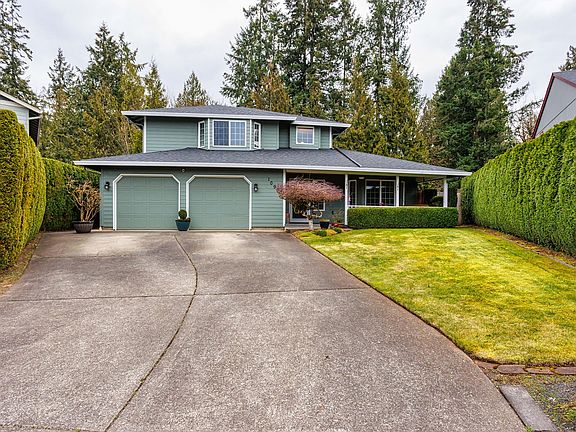 Back on the market due to no fault of the seller or the property. A very clean inspection was done, but Buyer had a change in life circumstance. Rare find in Downtown Ridgefield. Privacy in front and back. On a quiet dead-end street. Vaulted ceilings. Skylights in the living room, main bath and primary bathroom for lots of light everywhere. Open great room concept plus a living room. Kitchen has a window with a view, stainless steel, island and eating bar. Large primary bedroom has double doors and bay window. The backyard is fabulous. Wait till you see it in the spring. Back is fully fenced, has a firepit, raised garden beds, sturdy shed, surrounded by privacy and green and has a smart three zone sprinkler system. No HOA. Home is in the golf cart zone and close to everything. Walk to restaurants, the post office, several parks and the developing waterfront. This is like a brand-new home with newer roof, windows, carpet, exterior paint, interior paint, furnace, air conditioner, security door, skylights, fence, water heater and washer and dryer. Really, all of those have been updated plus the washer and dryer are included.