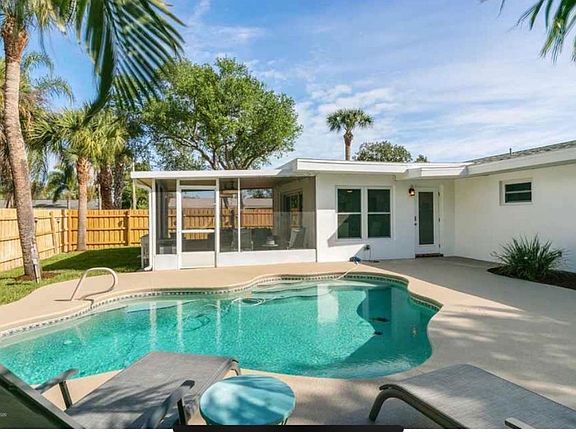 Beautiful 3 Bedroom 2 full bath, corner lot pool single family home has the added security of brand new roof, new hurricane impact rated windows and combination exterior door locks. Bright and Airy open floor plan with hardwood throughout. Lots of natural light! Updated kitchen with newer appliances and granite countertops. Washer and Dryer in home. Large 2nd refrigerator in garage. Great outdoor living areas with sparking salt water pool and newly fenced in yard! Walking distance to beaches, river, A rated schools, new Publix shopping center, night life and entertainment. Pool and lawn maintenance included in monthly rent. Tennant pays for Electricity and water. Owner pays for weekly lawn service and pool maintenance.