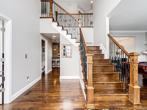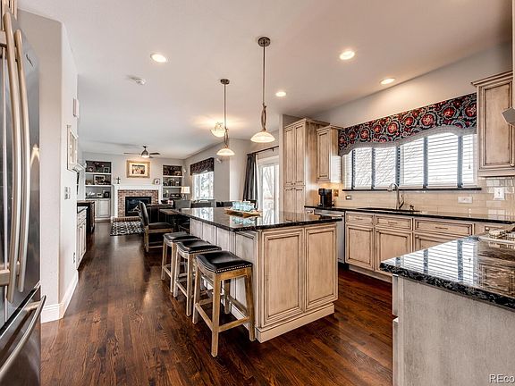 BEAUTIFULLY APPOINTED RICHMOND ANNE MODEL*SHOWS LIKE MODEL HOME*VIEWS INTO MITCHELL CANYON TRAIL*FRONT STUDY WITH FRENCH DOORS*VAULTED ENTRY*CUSTOM CARPENTRY DETAIL STAIRCASE WITH HARDWOOD TREADS*DETAILED CHEF KITCHEN WITH LARGE SITTING ISLAND, LOTS OF BUILT-IN IN CABINETS INCLUDING CABINET PANTRY*GRANITE COUNTERTOPS*STAINLESS STEEL APPLIANCES*OPEN TO FAMILY ROOM WITH BRICK GAS FIREPLACE AND BUILIT-INS*DINING AREA IS OPEN TO LIVING ROOM*EXPANSIVE MASTER BEDROOM WITH LARGE MASTER BATH AND WALK-IN CLOSET WITH BUILT-INS*3 ADDITIONAL SECONDARY BEDROOMS THAT SHARE A FULL BATH OFF HALL WAY*UPPER LAUNDRY WITH WASH BASIN AND CABINETS*FANTASTIC DECK AND COVERED PORCH AREA FOR OUTDOOR LIVING*FLAG STONE PATIO FOR GREAT OUTDOOR EVENINGS & SMORES*OVER-SIZED 3 CAR GARAGE FULLY DRYWALLED AND PAINTED* OPEN BASEMENT FOR LOTS OF ADDITIONAL STORAGE* ALL NEW WINDOWS*EXTENSIVE HARDWOOD FLOORING THROUGHOUT THE ENTIRE HOME*MANY FINE APPOINTMENTS THROUGHOUT*COMMUNITY POOL AND RIDGE HOUSE*PARKS*TRAILS*SHORT DRIVE TO SHOPPING,I-25,DTC.
