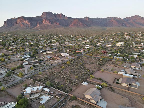 1.02 acre corner lot! North and East frontage on a county island with a view of the amazing Superstition Mountains. Ready for your custom home with no size requirements. Modular homes are not allowed. Natural desert landscape that has not been bulldozed so you can choose to either preserve and enhance natural beauty to your liking, or to clear it and set it up the way you want. All roads are paved/city maintained that provide access to the property and only 2 miles from the US60 Superstition freeway!