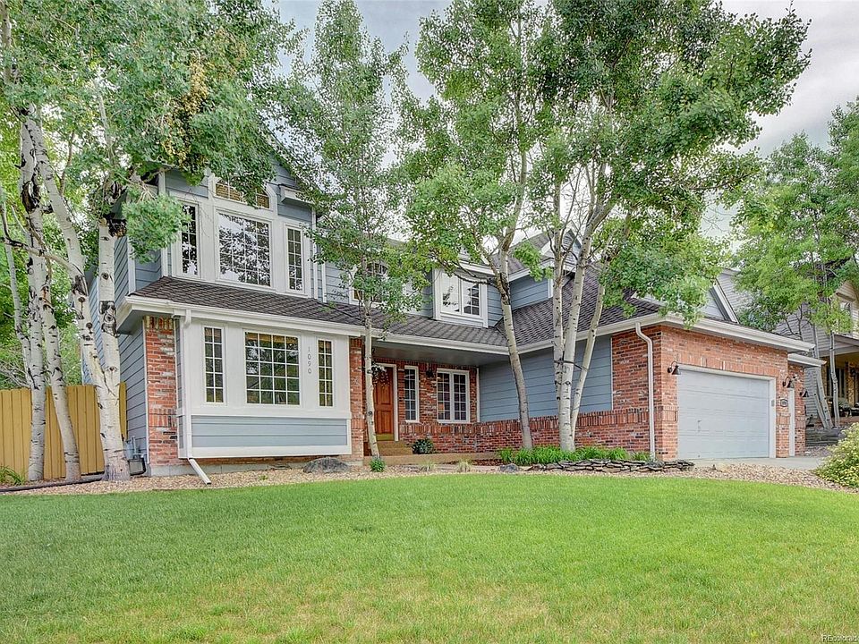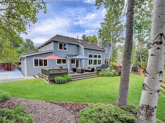 This spacious open floor plan offers a formal dining room, living room, cozy family room with fireplace and a private study perfect for a home office. Completely updated kitchen with a huge island and large adjacent breakfast nook. In addition, you will have plenty of room with the walk-in pantry and a secondary office area. An expansive custom mud room and main floor laundry offer ample storage. Retreat the to the master suite with quiet, private sitting area, luxurious master bath, and large walk-in closet. The three additional bedrooms down the hall share a full bath. The professionally finished basement is complete with a media/gaming area, exercise space, wet bar, extra storage and bonus room. Enjoy the custom built shelves and cabinetry throughout the lower level. Relax on the back deck surrounded by mature Aspen and Pine trees that offer beauty and privacy or enjoy the rare covered front porch. The low maintenance yard also offers a basketball court!