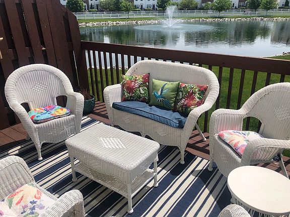 Condo end unit. Community includes pool, water/sewer/trash, all exterior maintenance. One-car detached garage included. Two bedrooms with en-suite bathrooms and walk-in closets, plus two additional half baths -one on the main living floor and one in the basement. Basement rec room finished with gas fireplace and half bath. Unfinished laundry space in basement. 1,320 square feet above grade. Updated granite countertops in kitchen and bathrooms throughout. Updated pantry with wood shelving. Rear deck overlooks pond. Owner pays association dues (includes pool access, water, sewer, trash, exterior maintenance, snow removal). Tenant is responsible for gas and electric and must be in tenant's name. One month's rent deposit required. Background check and minimum credit score required. One year lease required, after first year, 30-day notice from either party to vacate. Pets allowed upon approval.