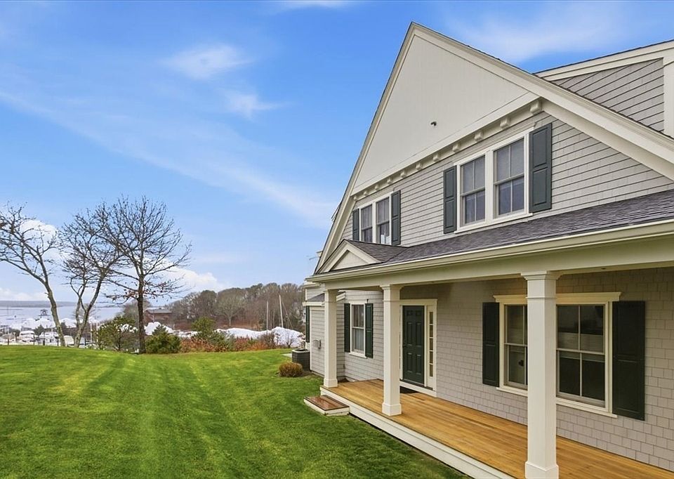 Imagine settling in by the fireplace or on the patio for sunrise or sunset, enjoying your favorite refreshment while taking in sweeping views of Red Brook Harbor and Buzzards Bay. The home is meticulously designed with crown molding, custom woodwork, first-floor laundry, an attached garage, and mudroom/pantry space. The main level features a chef’s kitchen with Wolf and Thermador appliances, custom cabinets and counters that flows into a cozy living room. A first-floor suite offers a tile bath and walk-in closet. Upstairs, another bedroom with spa-like en-suite bath and dual walk-ins sits apart from a sun-filled family room with powder room, kitchenette, and a deck overlooking the shell path and water. The third floor adds flexible space—guest room, office, or playroom—with another deck facing Buzzards Bay. Enjoy the common pool in warmer months. The basement offers room to expand, a hobby area, or gym. Whether relaxing or entertaining, Red Brook Harbor is a peaceful retreat.