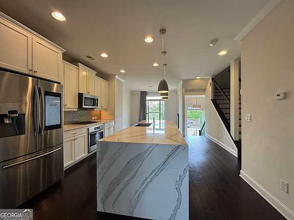 Welcome to a stunning, upgraded townhome in the highly sought-after gated community of Township Square. This beautifully upgraded residence offers a modern and functional layout designed for today's lifestyle. The main level boasts an open-concept design featuring a spacious kitchen with stainless steel appliances, granite countertops, and sleek, modern lighting throughout. The kitchen seamlessly flows into the dining area and family room, complete with a cozy fireplace-ideal for entertaining or quiet evenings at home. The entry-level includes a versatile third bedroom with a full bathroom-perfect for guests, a home office, or in-law suite-as well as a two-car front entry garage for added convenience. Upstairs, the luxurious Owner's Suite is a true retreat, showcasing a tray ceiling, a large walk-in closet, dual vanities, walk-in shower, and a relaxing soaking tub. A second bedroom upstairs also features a private en suite bath and a walk-in closet, ensuring both comfort and privacy. Situated in a walkable, gated community with easy access to GA 400, this home is minutes away from Avalon, North Point Mall, and top-rated schools, restaurants, and shopping. Experience the perfect balance of luxury, comfort, and convenience. Copyright Georgia MLS. All rights reserved. Information is deemed reliable but not guaranteed.
