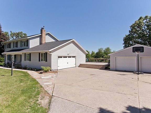 This home features over 4 acres of land-a dream for gardeners and tree lovers. Host large family gatherings in the hearth room off the updated kitchen, relax in the large updated living room. Enjoy four bedrooms with a nearby second story laundry room, roomy closets in every room, lots of updates throughout. The 20x12 back deck is perfect for grilling and hosting parties, the 10x35 sun room overlooks the wooded back yard full of deer, turkeys, foxes, hawks and other wildlife, two apple trees and a lot lined by raspberry bushes and mulberry trees. The house also has a 10x35 lower level sun room with walk-out to deck, a 24x24 detached garage for your ATVs or snowmobiles, as well as a 25x32 attached garage with room for two cares and all your bikes. Magnificent view! You won't be able to find a lot like this for this price! Less than a half mile to the library, park and convenience store, on paved road. Enjoy the pleasures of country living with the convenience of being close to town.