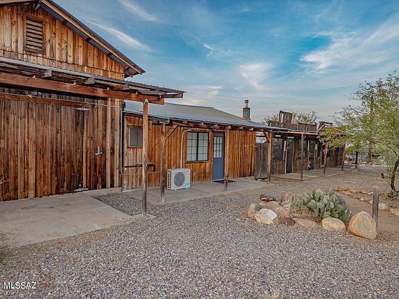Check out this truly unique property! Behind the old western facade is a 3 bedroom home with a newly updated kitchen! This home features vaulted and high ceilings, a pellet stove to keep you warm, and a mini split and window units throughout to keep you cool in the summer. There is also an evaporative cooler. Step onto the back patio and be in awe of the expansive views of Mt Graham and the surrounding desert! The property, is directly adjacent to state trust land to the west, meaning continuing unobstructed views in that direction! This property is zoned to have two residences on the property, so you could potentially add another dwelling unit, or rent out RV space with the hookup in the back! Imagine the possibilities!