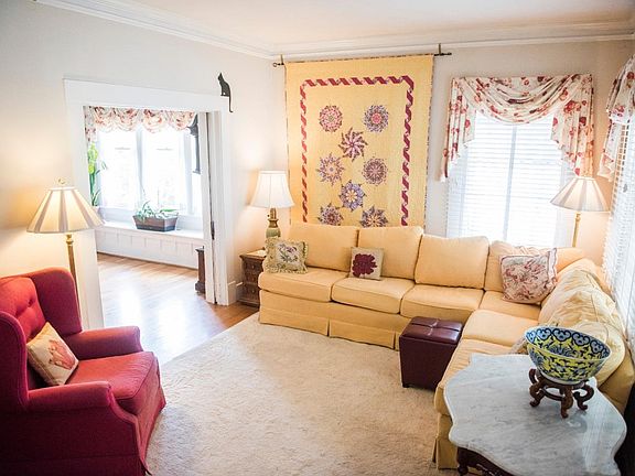Cute and charming Bungalow home built in the early 1900s with newer roof and foundation. The family room has a fireplace and surround sound wiring with lots of natural lighting. A third bedroom was added in 2006 which is great for guests, an office, or hobby room. The kitchen has a great layout with ample cabinets, a high end Viking stove, tile countertops with complementary flooring, and a cut out to the family room. The home has separate living, dining, and family areas with hardwood floors mostly throughout the home. A Jack-and-Jill bathroom in between the front bedrooms. Other amenities include: a welcoming front porch, built-in dual side shelving, large walk-in closets, custom stained glass windows, window seats, stacking indoor washer and dryer closet, a potassium water softener, detached two-car carport, small green house, mature fruit trees, fenced yard with tandem parking, and privacy gate to backyard. Walking distance to Downtown Hollister and San Benito High School.