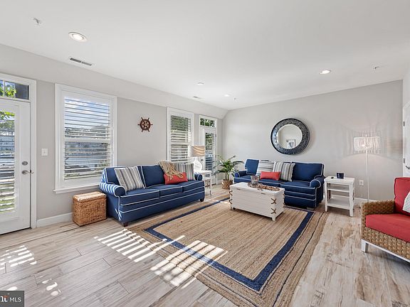 PRICE IMPROVEMENT MARINA FRONT HOME WITH A SOUGHT AFTER BOAT SLIP INCLUDED . Situated in the established gated , waterfront community of Glen Riddle.This elegant townhome with water views from front and rear of the home is convenient to Ocean city , restaurants , shopping and beaches . Featuring Hunter Douglas wood shutters, imported Italian ceramic, tile, hardwoods, and more. This stunning spacious townhome features a living room with a cozy fireplace, designer ceiling fan, a beamed ceiling, and a walkout to a low maintenance balcony overlooking the water, followed by a central open dining room. Open and bright, the eat-in kitchen boasts 42” raised frame cabinetry, granite counters, stainless steel appliances including a refrigerator that makes crafted ball ice, a shiplap accented center island with a second breakfast bar, and a breakfast table space. Owner’s suite presents a waterfront balcony with marina view, a large walk-in closet, a ceiling fan, and a garden bath with a double vanity and soaking tub. Comfort and livability thrive in the lower level offering a rec room, a full bath, and a walkout to the yard and dock . Partially furnished home includes all rooms except basement living room and patio furniture . Take a ride to Ruth Chris or the clubhouse on your new golf cart included with the property. Amenities: lawn maintenance, pool, boat dock, boat ramp, club house, fitness center, game room, gated community, golf course, golf course membership available, a marina club, meeting room, party room, and tennis and pickleball courts.