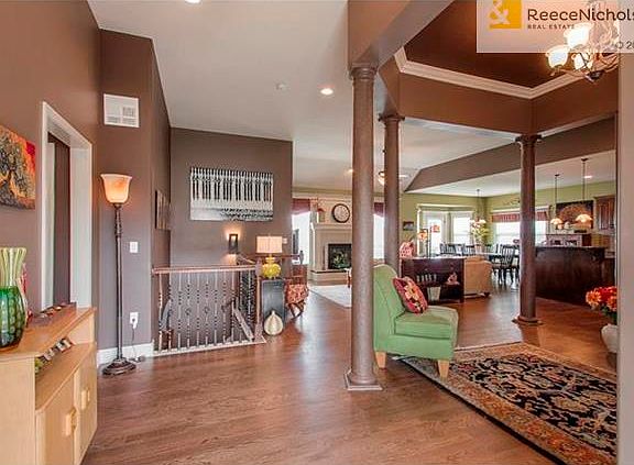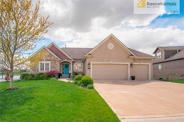 Better than new! One Owner cust Rev Ranch,Staley Hills. Warm inviting colors draw you in, gorgeous great room w/ fireplace & view of the lake off deck. New Hardwood floors on entire first floor! Kitchen offers granite tops, s/s appliances, spacious pantry w/grocery drop from 3 car gar. Kitchen island would seat six plus spacious dining area. Fin full walk out bsmt to patio and lake, living area and room for the pool table, 3 & 4th bdrm and executive office (or 5th bdrm w/ closet) plus 3rd full bath. Close to pool!