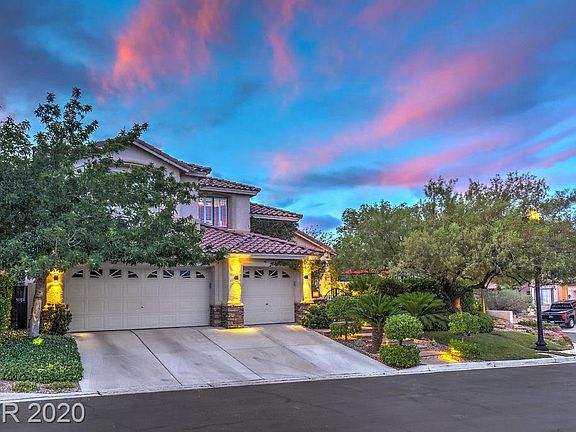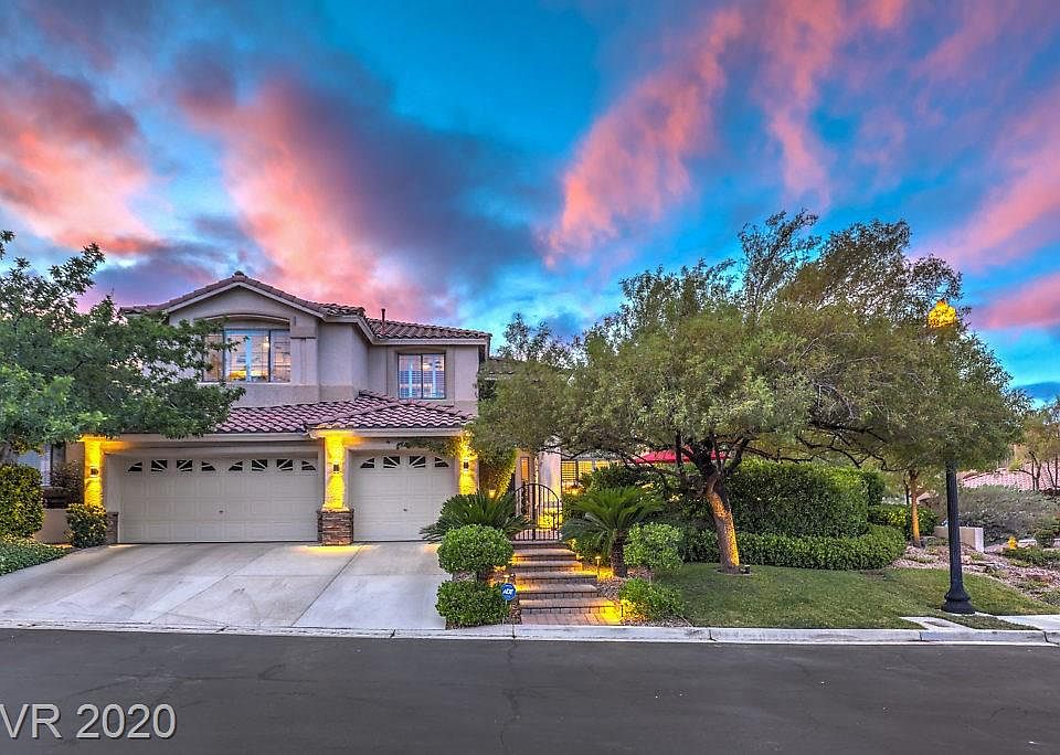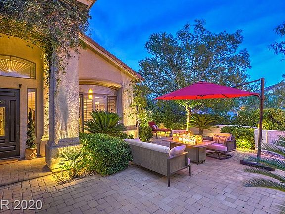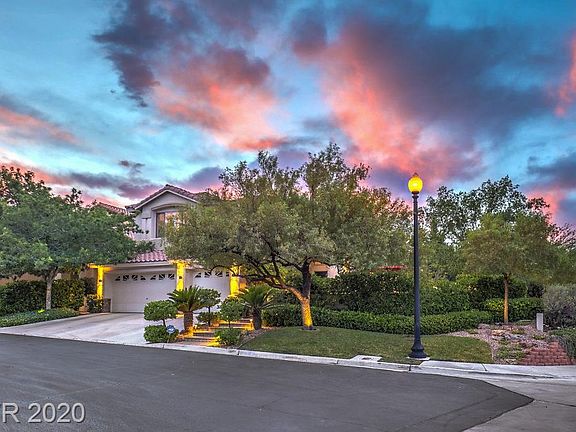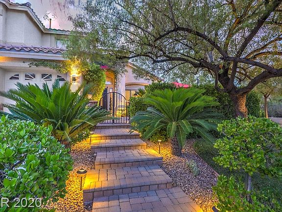 This amazing Summerlin home checks all the boxes! Gated community, beautiful corner lot surrounded by lush landscaping. Lg private gated courtyard features paver patio, outdoor living area. The attention to detail is apparent throughout this home to include updated lighting, cased archways, custom paint, designer carpet t/o, engineered hardwood floors, crown molding & lg baseboards T/O. Wainscot in dining rm. Remodeled kitchen includes stainless professional appliances, lg granite island & pantry. Custom hearth & mantle, built-in shelves in family room, drop zone/cabinets. Bed & full bath on main level, office. Spacious master up w/double doors w/fireplace & balcony. Remodeled master bath, 3 add'l bdrms, one is a lg bonus/bedroom. Salt water pool/spa, covered patio, lg outdoor custom sauna, lush landscaping, lots of privacy, adjacent to tennis courts, 100's of miles of walking trails, close proximity to hospital, fire, police, Downtown Summerlin's resturants/shopping & schools K-12.