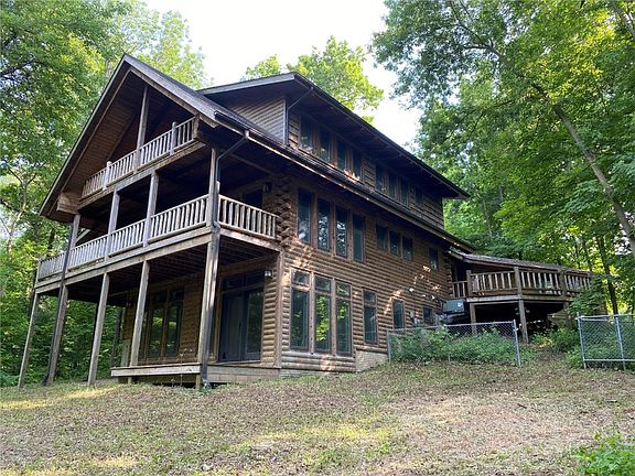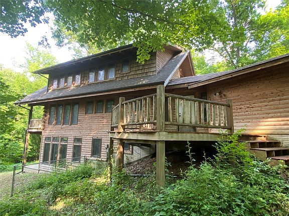 Lovely custom-built log home on 3.67 wooded acres in private development in beautiful Grant Wood country! Open concept bedroom, bath, and loft on upper level, with deck for fantastic wooded views. Main level kitchen, dining area, laundry, main bedroom and bath, and living room with woodburning stove and beautiful floor-to-ceiling stone chimney. Fantastic deck and screen porch off the living room. Lower level features a family room with second woodburning stove with stone, walkout to deck, 3rd bathroom, and nonconforming room that could be third bedroom if egress window is installed. Good-sized 2-car attached garage with nice breezeway and deck. Home needs some maintenance (staining, minor wood repairs, repair/replace skylight, install and finish sheetrock in lower level, replace some screens, etc). Move in, complete the repairs at your pace, and enjoy good equity in your dream log home on almost 4 acres of wooded solitude.