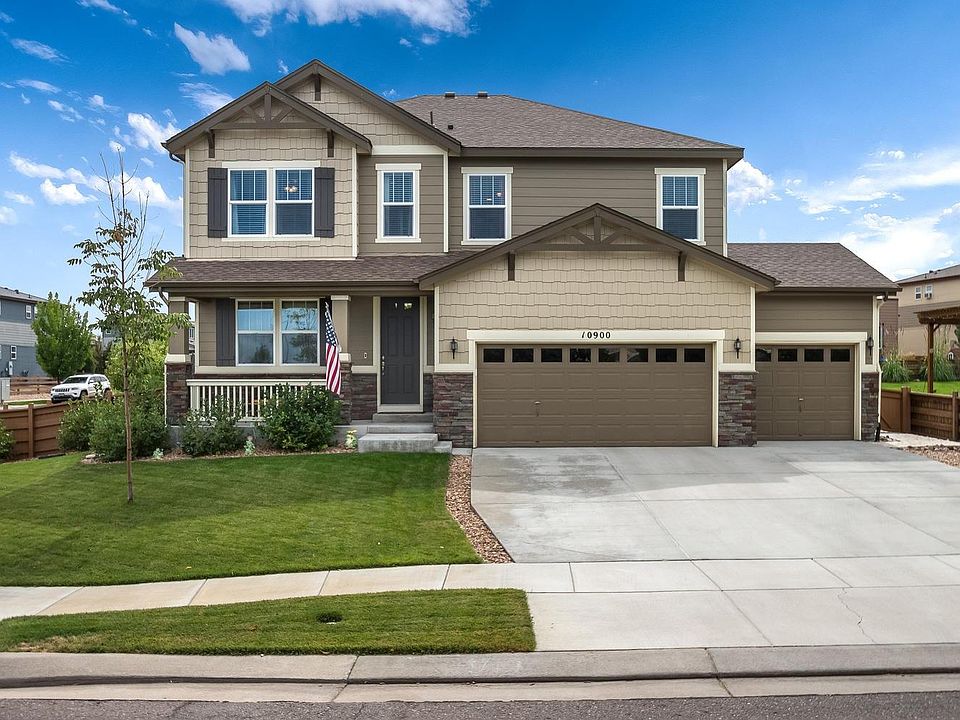 Why buy new? This meticulously maintained 5 bedroom, 4.5 bath home has everything you've ever wanted! Gourmet kitchen complete w/ espresso cabinetry, stainless appliances, granite countertops & walk-in pantry. Ideal for all entertaining needs w/ ample serving space & massive kitchen island. 3-sided, sunny morning/dining room with vaulted ceiling. Office on the main floor. 4 bedrooms upstairs including one guest suite with it's own full bathroom, laundry room & an additional loft space. Finished basement has a bedroom, bathroom, storage room, and a huge open room currently being used as a game room & living space. The backyard was professionally landscaped with fire pit & seating, dog run, & garden. Huge covered patio. Home sits on a large 10K S/F corner lot. One block from Reunion Park; walk to movie nights! Low HOA dues. State-of-the-art Recreation Center that includes a gym, fitness center & pool. Walking/biking trails, parks & ponds. Easy access to E-470, Hwy 2, I-76 and I-70.