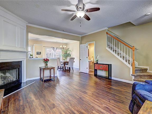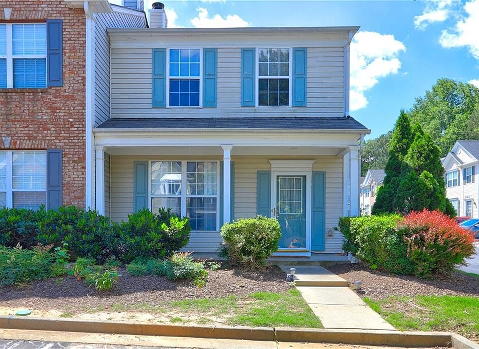 Beautiful 2-bedroom, 2.5-bath end-unit townhome in a quiet, private Alpharetta neighborhood! Enjoy a bright and open main floor featuring a cozy fireplace, kitchen with granite countertops and breakfast bar, dining area, and a convenient half bath. Relax on the charming front porch, back patio, and take advantage of the extra storage space. Two assigned parking spots right outside make coming home easy. Upstairs offers double masters bedrooms with private bathrooms, large closets, a laundry closet, and linen storage. Located just minutes from Avalon, GA-400, Big Creek Greenway, and North Point Mall. Situated in a top-rated school district! Low HOA fee ($182/month) includes water, landscaping, pool access, pest control, and termite protection. Recent updates include a new roof installed. A fantastic opportunity to own a well-maintained home in a prime Alpharetta location — schedule your showing today!