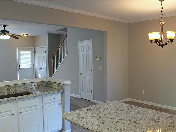 - Kitchen Features: Cabinets White, Pantry, Breakfast Bar, Breakfast Room, Stone Counters, Kitchen Island, View to Family Room