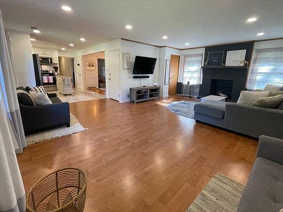 3,400 SF, 4-sided brick ranch with a finished basement sitting on 1.24 AC in the heart of Roswell, GA. This home has two stories, a finished basement, and a large lot, and is within walking distance to Canton Street and Roswell Area Parks. The property has a large lot with a wooded and private backyard, well water, and a septic tank. The home has recently been renovated, with a new kitchen, flooring, and paint a fully finished basement with concrete stained floors and a half bath. The primary bedroom is on the main with an en-suite bathroom. Two large living rooms and a dining room are just off the kitchen.