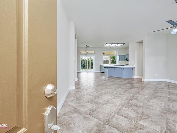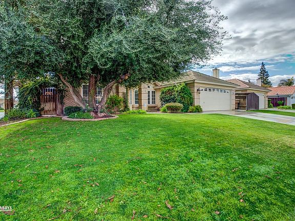 Nestled in the Campus Park area of Mirage, this adorable home sits on a corner lot. Lots of shade from the huge Redwood trees. Interior of home features all tile in main areas, soft warm carpeted bedrooms. Office can be used as 4th bedroom w/o closet. Large wrap around breakfast bar. Walk in pantry in kitchen, plus stainless appliances. Gas fireplace in great room, with nice sized dining area. Home is a split wing plan, two guest bedrooms plus office and guest bath on one side, opposite you will find a hallway leading to primary en-suite with large bedroom, cozy fireplace that separates the bath, soaking spa tub, oversized shower, double sinks, walk-in closet and private water closet. Backyard is quaint and cozy with a gazebo, covered patio full length of house. Laundry room leads to garage, extra storage throughout, newer AC, carpets, and more. Lots to love in this adorable home.