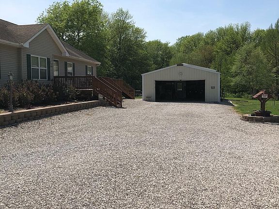 Country living, 3 bedroom, 2 bath, master bath has custom shower and walk-in closet, pole barn has office room with window AC and refrigerator, storm shelter, city water and well water, propane and aeration.