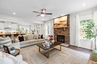 Cozy fireplaceOpen loftOpen floor planScreened porchConvection wall ovensInduction stoveModern kitchen