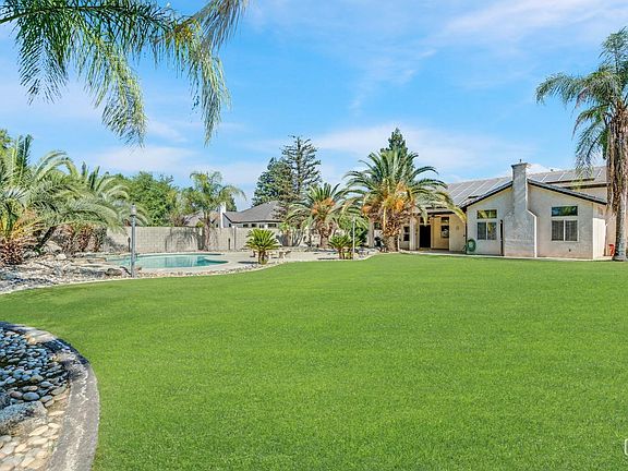 Welcome to this exquisite 3-bed, 2-bath home in Northwest Bakersfield, gracefully situated on a half-acre lot and brimming with remarkable features, including owned solar, RV parking, and a sparkling swimming pool. The expansive outdoor space is a haven of relaxation, featuring a covered patio, a pool and spa, and lush, mature landscaping. Inside, the home boasts elegant laminate wood-like flooring, an open split-wing floor plan, and a tankless water heater. The gourmet kitchen is a chef's delight, equipped with a breakfast bar, ample cabinetry, stainless steel appliances, and a charming breakfast nook. The inviting living area is enhanced by a new gas insert fireplace, while the indoor utility room offers extra storage space and a convenient sink. The master suite is a private retreat, with backyard access, a spacious walk-in closet, and an attached bath featuring a vanity, walk-in shower, and separate soaking tub. Don't miss this extraordinary opportunitycall today!