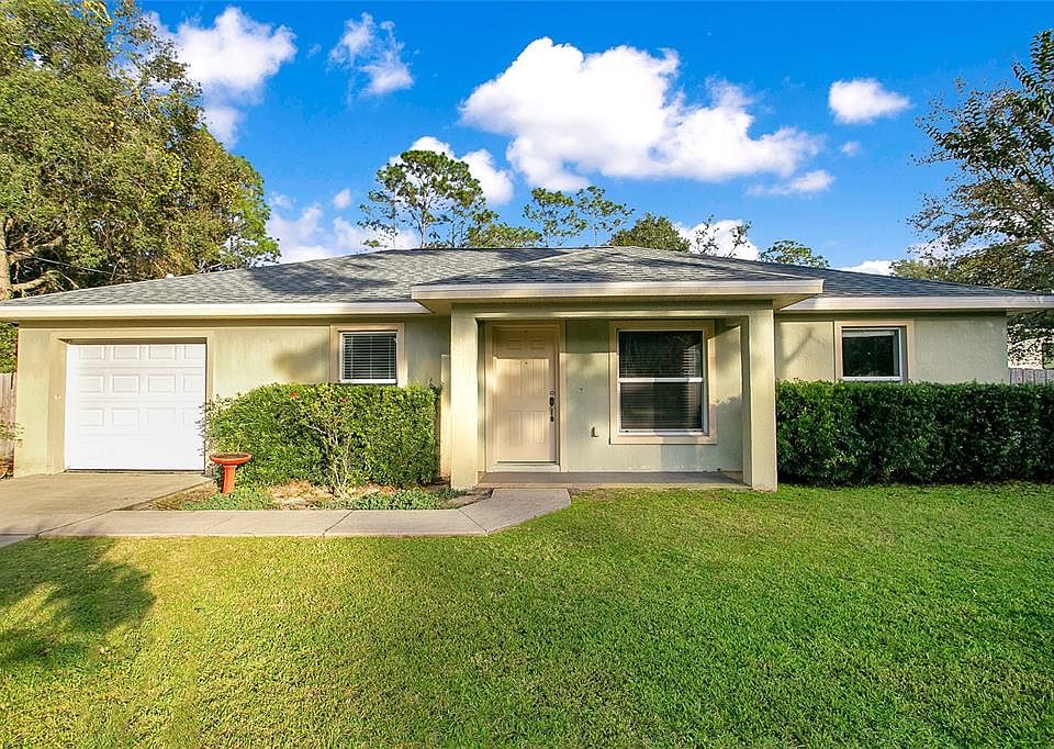 One or more photo(s) has been virtually staged. **ACCEPTING BACKUP SHOWINGS & OFFERS.** Your countryside escape awaits! Welcome home to Dunnellon, FL, where the perfect blend of country charm and city convenience is found. This delightful property, set on a spacious 1/3-acre lot, offers a tranquil escape while keeping you just a short drive away from urban amenities. As you approach the home the ranch style exterior invites you to a place of warmth and comfort. This block home features a stucco exterior accented with low-maintenance landscaping, a spacious front yard and a cozy front porch for you to relax and enjoy the evening sunsets. Upon entering, the living room opens to the dining room with views to the large back porch and spacious back yard. The dining room connects to the kitchen, creating a perfect setting for entertaining guests or spending quality time with family. The kitchen is generously spaced and leads to the laundry room with a washer and dryer and custom pantry shelves. This home features a split floor plan with the primary suite, including a walk-in closet, is just to the left upon entering the home. The secondary bedrooms and bathroom are through the hallway on the right side of the open living area. Through the French doors off of the Dining room, step into the expanded back porch with access to the fully fenced-in backyard where the possibilities are endless: gardening, raising chickens, outdoor activities, boat or RV storage or even the addition of a pool. You'll have all you need in place with this home as far as major systems: Roof is 2023, A/C is 2017, septic tank pumped 2022, whole house water filtration 2021, well motor replaced 2021 and the home has a termite bond transferable to the next owner. This property is strategically located to provide the best of both worlds—a peaceful countryside setting and easy access to the amenities of nearby Ocala. Enjoy the charm of small-town living while still being within a short drive to shopping, dining, and entertainment options including Rainbow Springs, the World Equestrian Center, Calesa Township, Ocala National Forest and numerous trails, horse stables, community parks and preserves... something for anyone. This home is located 20 minutes to i-75, 1 hr+15 min to Interstate-4, just over 1 hour to Cedar Key and 1.5 hours to Disney, Universal and Central FL theme parks. Schedule your showing today!