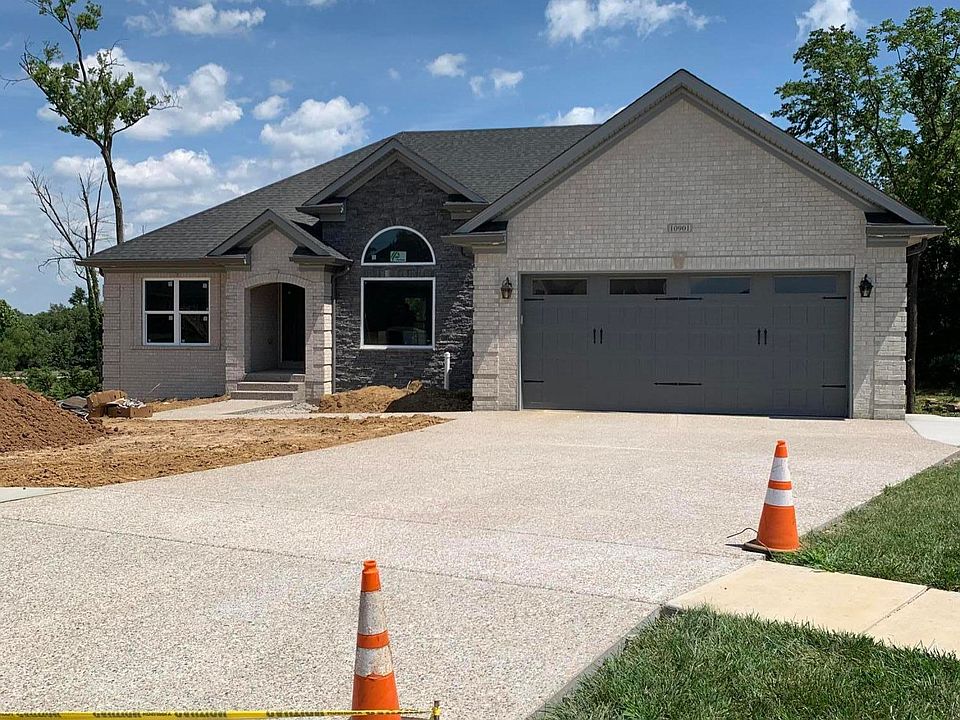 New construction ! 2100 sq ft all brick, 3 bedroom, 3bath, large 2 car garage ranch! Formal foyer & great room have 10' ceilings with crown molding, gas fireplace with custom built mantel . Kitchen is open to great room with large island, abundance of cabinets with granite tops, . Spacious 13' x 13' breakfast area with door leading to a large 12' x 19 'COVERED deck. Large Master suite has an oversized walk in closet, hip trey vaulted ceiling with crown. Master bath has dbl bowl granite vanity with under mounted rectangular bowls, 6' tiled shower. 2 addt'l bedrooms, full bath & laundry room with built in shelves . There's a full walkout basement with finished 1500 sq ft . With a full bath , 4th bedroom , office & family room. With additional 600 sq ft unfinished. Porcelain tile in laundry & baths, laminated flooring in foyer, hall, great room & kitchen, carpet in all three bedrooms. Brushed nickel plumbing fixtures, lighting & hardware.