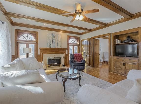 Welcome to beautiful Nottingham Forest! This is a lovely, traditional, well maintained Nottingham beauty, Seller has added hardwoods throughout the main level. There is a spacious kitchen, quartz countertops and the hearth room has a lovely brick fireplace. The Great Room is very large and also with a fireplace. The main level of this home has newer Anderson windows! The master suite boasts a third fireplace along with a separate sitting room. This room could be used for a nursery, relaxation, or an office area. The master bath has been updated with tiled floors, bath surround, granite counters and a new shower. In addition to the walk in closet in the mater bath, a 23 x 15 closet is located off the master bedroom sitting room. No problem with closet space here! All bedrooms are very spacious and all have large walk-in closets. The finished basement has a bar area, sitting area, and 1/2 bath. There is plenty of extra room for entertaining family and friends. The side entry oversized garages will accommodate the largest of vehicles. Off the kitchen, the rear of the home has a privacy fence, but the property line does extend way beyond the fencing. This home is located within the award winning Blue Valley School district, just minutes to highway access, lots of shopping and entertainment. You will love the traffic free location of Nottingham Forest!