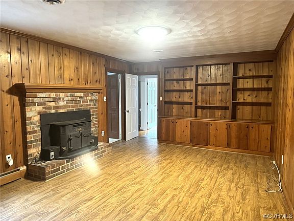 Well constructed all brick rancher located in the heart of Chester. Convenient to I 95 and 288. This 3 bedroom 2 & 1/2 bath rancher features beautiful hard wood floors throughout most of the house. From the foyer, it has a formal living room with crown molding, leading to a formal dining room with chair rail and crown molding. The kitchen has white cabinets, an island, and Corian countertops. Kitchen also features a large eat-in area with bay window. The Bay window has a cute seating area and storage cabinet below it. This home is very spacious with one huge family room, and an additional room that could be used as a second den area or office featuring a built in book case. There are 2 brick fireplaces- one with gas logs, and the other with a wood stove insert. All the bedroom are good sized with the primary bedroom featuring a walk-in closet and private bath. Home sits on a corner lot and has a rear chain link fence. The oversized 2 car garage loads from the side. There is a paved drive in the front and a gravel drive to garage entry. Home also features a spacious laundry room. The heat pump has oil back up heat with an underground oil tank. Fireplaces, chimney, flues, gas logs, wood stove insert, and appliances sold in as is condition. Interior freshly painted. Windows have been updated with replacement vinyl windows. Great maintenance free exterior home.