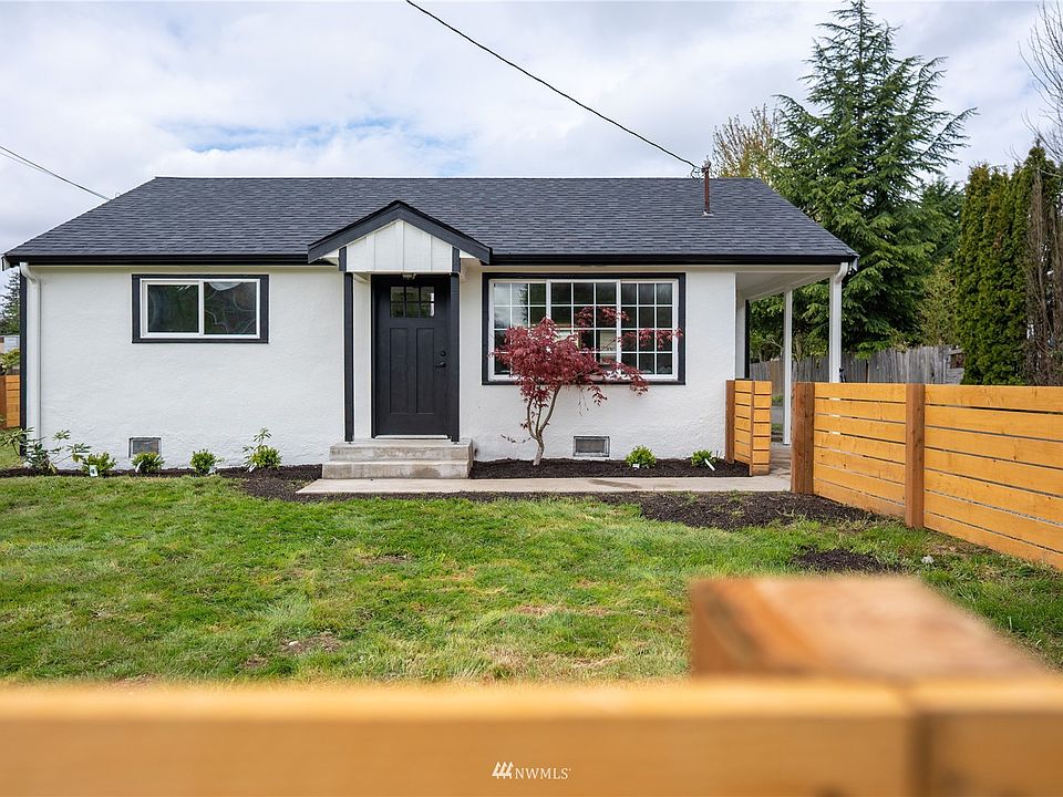 Introducing this Refreshed Cape Cod Style House in Everett Mall Community. Renovated Throughout Including a Large Covered Deck, New Fencing, New Roof, New Interior & Exterior Paint, and Double Pane Windows, New Vapor Barrier & Insulation in Crawl. Located on a Large Lot that has Plenty of Parking! The Redesigned Kitchen has 36” Upper Cabinets, Stainless Steele Sink, New Quartz Countertops, Stainless Steele Appliances & Custom Tile Backsplash. The Bathroom features New Vanity Under-mount Sink, Custom Tile Tub Surround & New Plumbing Fixtures. The Living Room has Retained it's Original Coved Ceiling & has New Laminate Vinyl Plank Flooring. The Two Bedrooms Have New LVP, New Lighting & New Doors. This Home is in Mukilteo School District.
