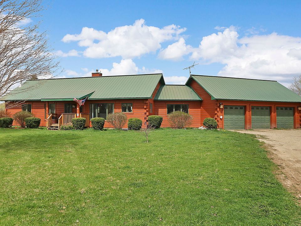 MULTIPLE OFFERS RECEIVED. HIGHEST AND BEST DUE -4/27 BY NOON. Welcome home to 10902 Button! Come adore this open concept log cabin with 16' cathedral ceilings, hardwood flooring throughout and even a 3 car garage for all of your toys on this serene 5 acre lot and a metal roof. This 3 bedroom, 2 bath cabin with full basement offers plenty of space for your country living, even your own apple and cherry trees. Even a hidden trap door for the loft access. New Furnace/Central AC and fridge - 2022. Appreciate the back porch with beautiful views and peace. Located on the IL/WI border, just minutes from Hebron and Lake Geneva.
