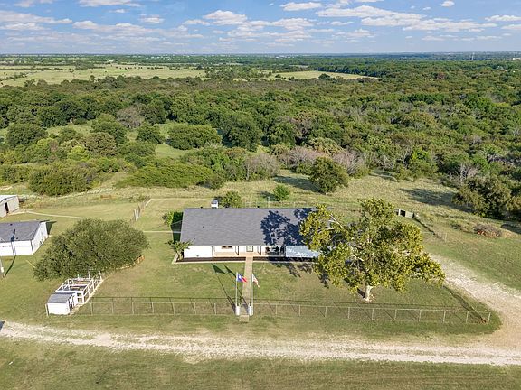 Escape to your own private hilltop country estate spanning over 61+ rolling acres with secluded year round Clear Creek frontage. This remarkable property combines modern comfort, ranch functionality, and multi-generational living potential all in one. The primary 3,600 sq. ft. 4 bd 3 bath ranch home sits atop the hill with sweeping panoramic views of the countryside, framed by more than 60–80 mature oak and pecan trees. Recently remodeled, it offers spacious living, granite kitchen countertops, and the perfect setting for family gatherings. A separate 1,800 sq. ft. second home with 3 bedrooms and 2 baths is ideal for extended family, guests, or even an on-site ranch manager—making this estate truly versatile for multi-generational living. For horse lovers, this is a dream come true: a 2,400 sq. ft. six-stall cedar barn with tack room, a 125x250 pipe arena, coastal pastures, and multiple loafing sheds. Additional improvements include a 1,523 sq. ft. workshop with a detached oversized 3-car garage and a 928 sq. ft. RV barn, offering abundant space for vehicles, hobbies, or storage. The land is equally impressive, rich with wildlife including deer and turkey, and with both a private well water and access to co-op water. Whether you envision a family homestead, working ranch, or peaceful country retreat, this estate offers the rare balance of utility, beauty, and privacy. All of this, just a short drive from Denton and the DFW Metroplex. A once-in-a-lifetime opportunity to own one of North Texas’ most scenic ranch properties.