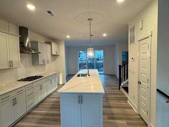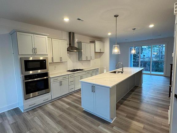 Gourmet kitchenLarge pantryTile backsplashStainless steel ge appliancesQuartz countertopsOversized walk-in closetOpen concept living