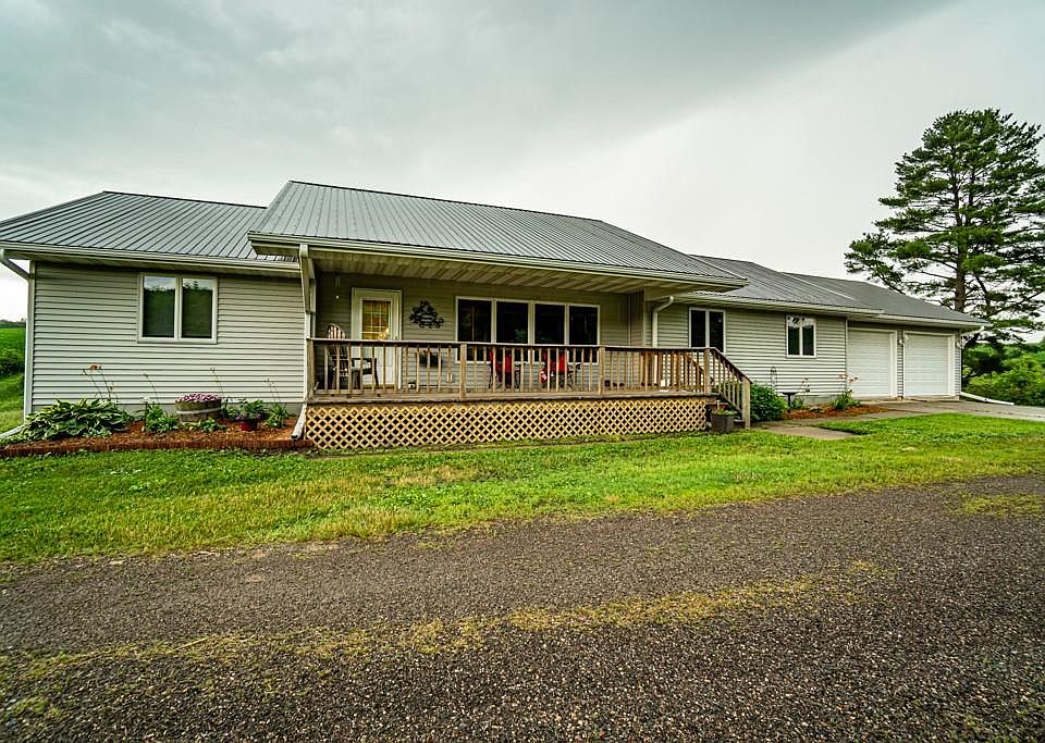 3 bedroom, 3 bathroom home with 80 secluded acres just South of Osseo in Northfield. This home sits amongst the rolling hills of Jackson County. Enjoy the wildlife and peaceful country living with easy access to I-94 and Osseo minutes away. Main floor is open with spacious rooms. Lower level has finished bathroom and can be finished to add more living space. Basement and garage have in-floor heating. Metal roof 1 year old and AC approx 5 years old. Also includes machine shed, 49 tillable acres rented out through 2023.