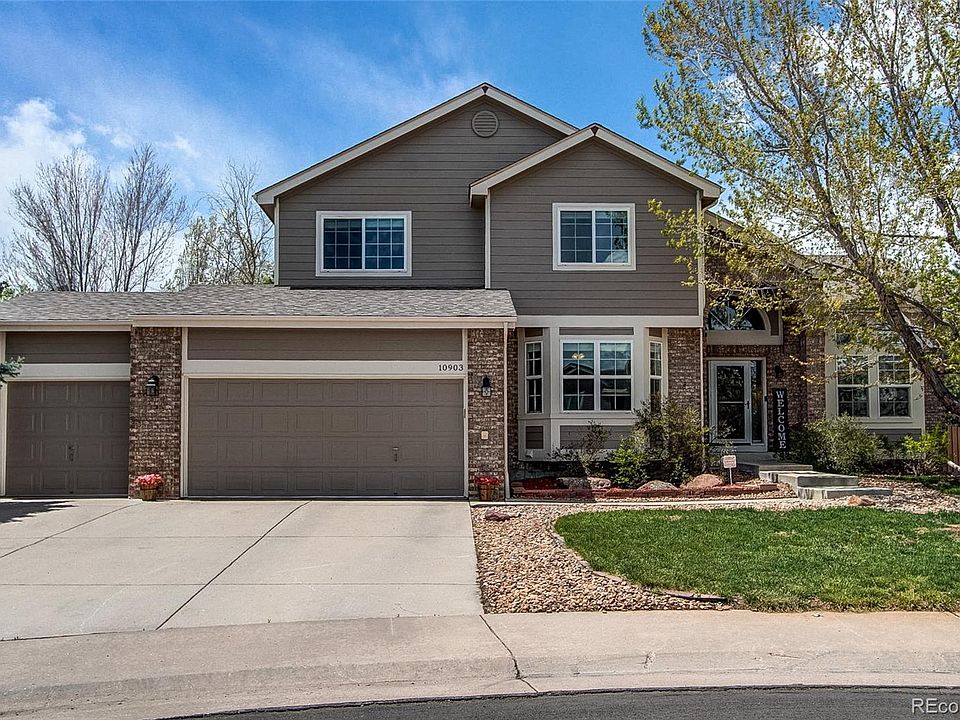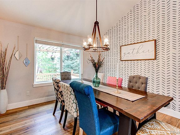 The perfect home in the perfect location! This fully updated, 3 car garage Parker home is situated on a nearly 1/4 acre private Cul-De-Sac lot, just minutes from Cherry Creek Trail system and, quick access to 1-25, DTC and the historic downtown area. As you enter this home, instantly you will take in the elegant entrance with vaulted ceilings, open staircase with iron baluster railing, and stunning architectural design. The main floor features luxury laminate wood flooring throughout, a spacious office with glass French doors, dining space for special occasions and a flex room that can be used as a music room, play area, 2nd office or living room. The kitchen is a chef’s dream with granite counter tops, island, gas cook top, GE Profile appliance, back splash, cabinetry with crown mounding & base trim and is open to the breakfast nook & family room with gas fireplace and large windows. Custom patio doors lead to a backyard private oasis, huge deck with arbor, mature trees and large yard for the kiddos or pets. The upper floor has 2 large secondary bedrooms with large closets, east facing windows and secondary bathroom conveniently located to the bedrooms. The Primary Bedroom suite has a double door entrance, vaulted ceiling and is the ideal size, with western views and situated on the private side of the home with a huge walk-in closet, attached bathroom suite with dual vanity sinks, corner soaking tub and custom shower featuring floor to ceiling tile, bench seat, Euro-Style glass enclosure and poured concrete tile floor. The basement is fully finished with a media room, wet bar (with dishwasher), pool table area, 4th bathroom, playroom area and has tons of extra storage space. Other key elements throughout the home include upgraded lighting and door hardware, professional custom paint, newer trim work, newer blinds, fresh carpet, dog run, walking distance to neighborhood elementary, parks and pool! This is a well cared for and loved home in exceptional condition.