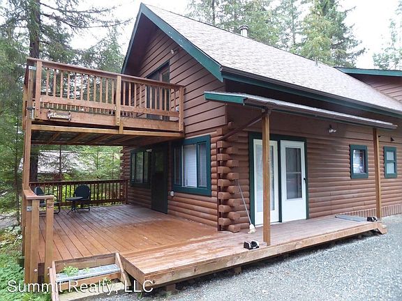 Mendenhall back loop home with large covered deck, pet friendly, laminate floors and boat/RV parking - A real log cabin ambiance off back loop. Three STUNNINGLY Large bedrooms one with an attached deck. Nice laminate floors and custom wood accents throughout. Well equipped kitchen features a breakfast bar with open concept feel. Full size laundry in one of the two full bathrooms. Home has electric and monitor heating to keep you warm in the winter. Enjoy your morning coffee from the inviting front porch surrounded by pines. Parking, parking, parking, there is coverage for two recreational vehicles if needed. Rent includes water/sewer and snow removal. The tenant is responsible for electric, oil, garbage and cable/internet/phone. (RLNE5161315)