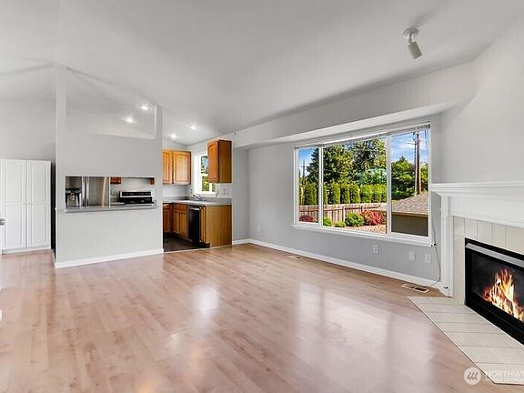 Light & bright home w/vaulted ceilings create an open, airy feel throughout. The kitchen also boasts vaulted ceilings & complete w/stainless steel appliances. Hardwood-style flooring enhances the dining & living room, and bedrooms feature cozy carpeting. The spacious primary suite features a charming double-door entry for added elegance & walk-in closet. The lower level offers additional living space w/comfortable wall-to-wall carpet. Outside, enjoy a sport court for active fun & a yard shed for added convenience. Enjoy strawberries, blueberries, raspberries, concord grapes & apple tree from your yard. Convenient commute to Boeing & major freeways. This lovingly lived-in home is ready for your personal touch—come see it before it’s gone!