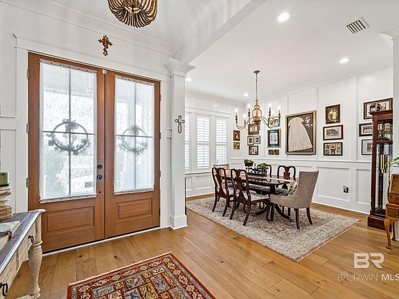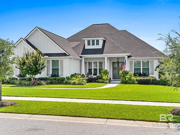 Gold Fortified & Better than new!!! This beautiful custom built 4 bedroom, 3 ½ bath home is located in The Verandas just minutes from beautiful downtown Fairhope. As you enter through the double doors you will be amazed at the comfort and style of this home. An open floor plan, neutral colors, gorgeous wood floors, custom light fixtures, and an abundance of natural light make this home stand out. So many enhancements were done after move-in, such as, brick accent walls, custom built in cabinet in breakfast area, quartzite countertops in kitchen, imported ceramic tile backsplash, porcelain sink, tremendous floor to ceiling cabinets in garage & laundry room and plantation shutters throughout the home. Also added was the fabulous pool and marble patio areas, whole house generator, completely redone yard, new topsoil, new St. Augustine sod, extensive landscaping front and back, and outside lighting to compliment the home, pool and landscaping. There is so much to see as you view this home, from the luxurious primary bedroom, the well designed kitchen, formal dining and breakfast areas and then the large living room with gas fireplace that leads out to the screened porch which overlooks the privacy fenced back yard with pool. Attention to detail is seen in the high ceilings, crown molding and beautiful wainscotting throughout the home. There is an irrigation system for entire yard. This subdivision does have a neighborhood pool also, stock ponds, community orchard/garden area and is in the Fairhope School District. Conveniently located for easy access to I-10. All information provided is deemed reliable but not guaranteed. Buyer or buyer’s agent to verify all information. Buyer to verify all information during due diligence.