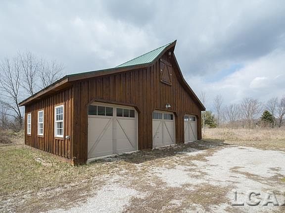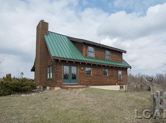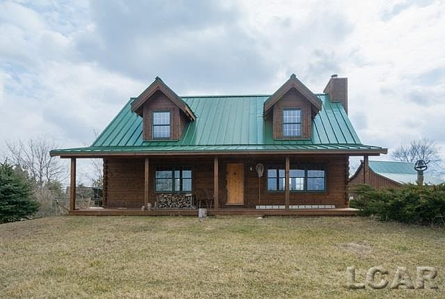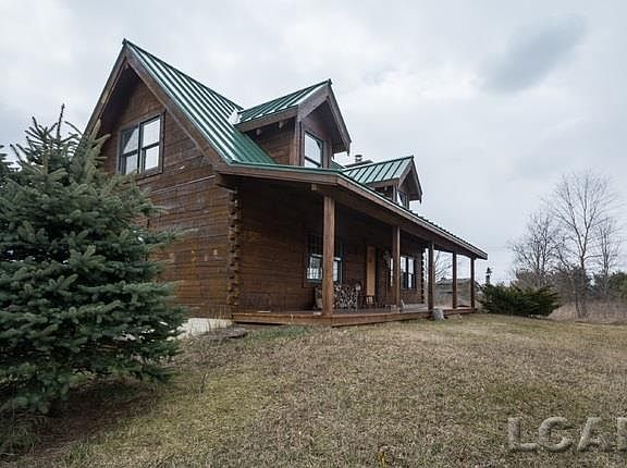 Custom Log Home on 4.89 Acres! Newer 2002 Built home, 3-car garage with finished upstairs studio, gazebo, barn with stalls, outbuilding, creek and footbridge! Home and property offers the details you'll appreciate with the front of the home facing the landscaped backyard and country views. Custom stone natural fireplace, artist painted interior entry door, bath with shower and tub, loft bedroom with office, sitting area, walk-in closet. Partially finished basement with possible 3rd bedroom. Workbench in garage and work table in studio to be included. Hot water heater has alternate solar power. Offering immediate occupancy. Must see log home!