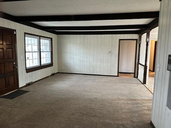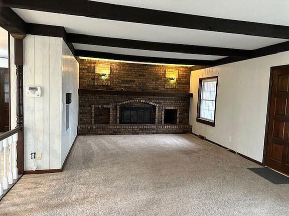 Spacious ranch, four bedrooms, all on main level. Huge kitchen and living room with wall to wall floor to ceiling brick fireplace. Basement is partially finished with wet bar & non-conforming area between bedrooms that could be used for an office. Home was originally built in 1930 according to Realist and was added on to. Home sits on approx. 3 acres. Driveway is shared with a rental property behind subject property that is not a part of the sale. Residence has been a rental. 2023 taxes will be pro-rated based on 2022 taxes. Buyers agent to verify sq. ft., etc. Yard is partially fenced, large trees. CASH OR CONVENTIONAL ONLY.