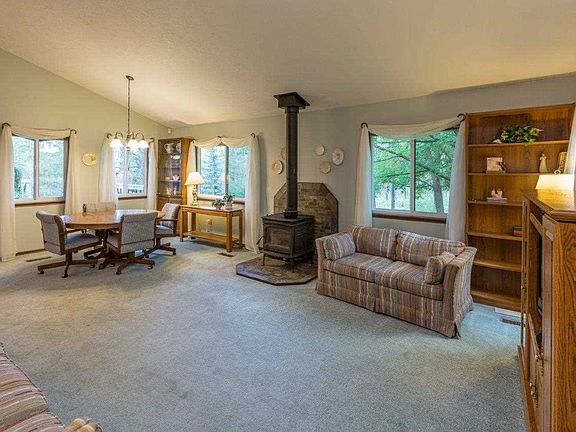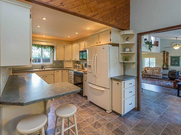 A Piece of Paradise! Secluded 3 bedroom, 3 bathroom home nestled on treed and fenced 4.68 acres. Features include; approx 32'x20' loft bonus room, updated kitchen and bathrooms, wood stove with cook top, pellet stove, extra large family room, huge deck with ramp, orchard with pear, apple, plum trees, blueberry bushes too. Sprinkler system. Greenhouse, chicken house and 2 car garage with 10'5" RV door.