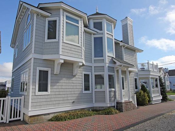 Wonderful upside down style home located in a great residential neighborhood across the street from the beachblock and walking distance to town. You will enjoy exceptional ocean views from inside the home as well as from the expansive east facing deck. The home is very well cared for, not rented and offers many upgraded features. The second floor great room has maple floors, gourmet kitchen with center island and granite tops. The kitchen has a Sub-Zero fridge with matching cabinet panels, two evens, Viking 4 burner with griddle cooktop, dishwasher with matching panel and a 2 stage top on the center island. The master bedroom has vaulted ceiling, built-ins, walk in closet and large master bath with separate shower and whirlpool tub. The first floor has three generous bedrooms, two baths, and a laundry room with tub and outside exit. The family room has French doors, maple floors, beautiful built-ins and a wet bar. Special features include maple floors throughout the common areas, wainscoting, custom built ins, large detached garage and a fabulous fenced yard with beautiful landscaping. The home is sold very tastefully furnished and decorated.