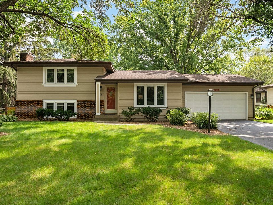 Welcome home to this beautiful, modified split-level home in Plymouth that offers easy living! This home offers 3 bedrooms and 2 bathrooms. The main floor boasts vaulted ceilings and an open kitchen and dining area with direct access to the beautiful backyard through a sliding door, hardwood floors complete the main level. The basement features a fireplace and another living area, a perfect flex space to use as you see fit. The backyard offers a cement patio, perfect for enjoying the fall. This house includes a storage shed in the back as well as a two-car attached garage and bonus space in the basement that can be finished. Prime location near Medicine Lake, parks and walking trails. Schedule your showing today!