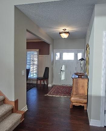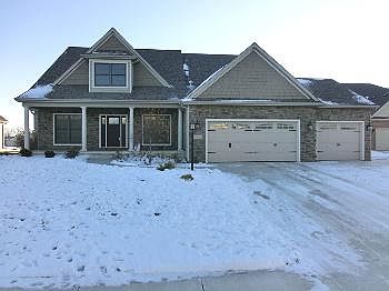 For more information on this home and more, please go to www.Century21Bradley.com.Walkout basement; Better than new! Part of Maggos Blvd collection; Outstanding painted woodwork; scraped hardwood in foyer, great room,formal dining room, kitchen, informal dining, mudroom and half bath; additional cabinets and shelving added by fireplace; wainscot in formal dining and upstairs hall;beautiful maple cabinets & island; stainless steel range, microwave, dishwasher; main floor master bedroom with walk in closet; master bath with marble floor, 2 sinks,jet tub and shower; 2 BR's up have jack and Jill bath; All BR's- walk in closets; guest bedroom with own full bath; landing area for study area; recessed 3 panel doors;custom electronic shades in great room; antique bronze hardware; rounded corner; seller had more of bsmt finished- family room, home theater or rec room, wet bar and full bath; great views of pond from deck and home; oversized 3 car garage with cabinet and sink.