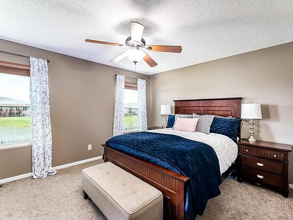 Welcome home to this clean and modern 5bed/3bath/3car ranch on a beautiful lake lot on the coveted Maize school district. This home has been well-maintained and is move-in ready, offering a completely open floor plan with an abundance of natural light. As you enter the living room, you'll notice the rich dark engineered hardwood floors, gas fireplace, and vaulted ceilings. The kitchen features new quartz countertops with new under mount sink, new marble back splash, a sizable center island, newly-stained cabinetry, stainless steel appliances, and a reach-in pantry. The adjacent dining area overlooks the rear deck and lake. The spacious master also offers lake views, plus a walk-in closet and en suite bath with dual vanities, soaker tub, new tile floor, new toilet, and separate shower. Both additional main floor bedrooms are bright and decently-sized. Rounding out this floor are the hall bath and laundry/mud room, both offering new tile flooring. In the view out basement, you'll find a generous family/rec room with dry bar, fresh paint, surround sound, projector, and screen (all remaining with the sale). Bedrooms four and five are extra large and have new closet shelving. The bath is well-appointed with quartz counter top, tile floor, and tub/shower combo. The storage/mechanical room allows plenty of space for personal items, and the deep freeze remains with the sale. Outside, you'll find a wrought-iron fenced yard with sprinkler system and irrigation well, some new siding/fresh paint, a curved patio beneath the deck, and stunning lake views. The owners of this home have access to the neighborhood pool, playground, walking paths, and lakes. Conveniently located between the growing city of Maize and busy New Market square, this home has very low special taxes at $135.85/year. They're going fast in this school district. Come see us today before it's gone! No showings, please, until 8am on Saturday, June 25th. *See the promo and 3D Matterport videos for additional views of this home.*