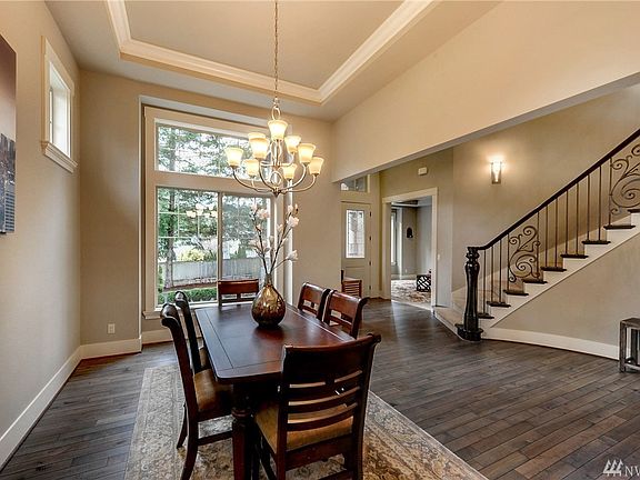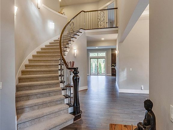 Luxurious grand entry home with a handcrafted circular staircase & balcony railings! The 3 car garage plan has 4 beds upstairs and 1 bed/den adjacent to 3/4 bath. Warm open feel w/ 10 ft ceilings on main floor. Gourmet kitchen opens to nook and great room featuring quartz island & counter tops, 2 sinks, stainless steel appliances & butler's pantry. Master Suite features vaulted ceilings with a 5 piece master bath & walk-in closet. Shy 1/2 acre fenced landscaped yard.