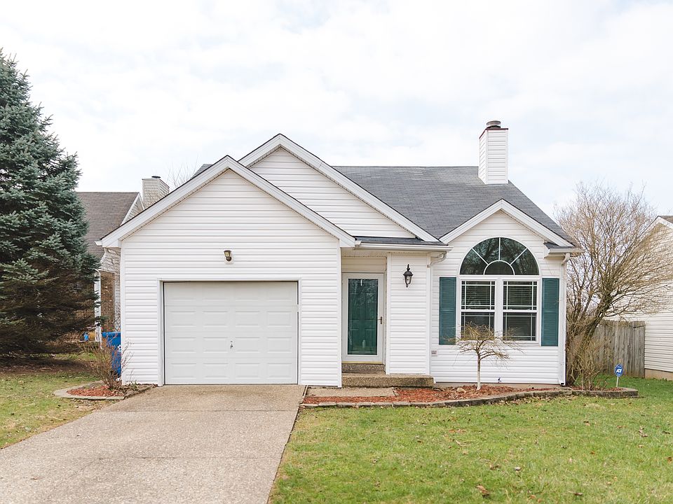 Enjoy the comfort and size of this 4 bedroom, 2.5 bath, walkout located in Springview Subdivision. Beautiful hardwood floors in living room, kitchen, hall and entry. Main level features a vaulted great room with fireplace, eat-in kitchen with a walk in pantry that walks out to deck, and a first floor master bedroom with attached full bath. Second floor has two large bedrooms, full bath, walk in closet and large unfinished storage. Finished walkout basement includes family room, computer area, 1/2 bath and bedroom with laundry. Walkout to patio and large backyard. One car attached garage, located on quiet cul-de-sac, convenient location! CALL 502-938-7155 for showing today!