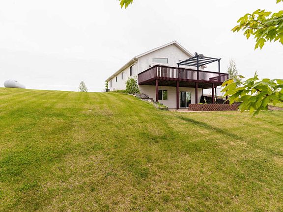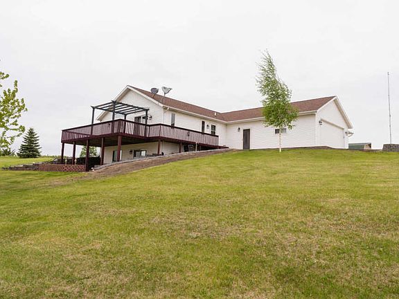 Enjoy lake views and beautiful sunsets from the the living areas and deck of this well maintained 3 bedroom walk out rambler. Lower level offers a 4th bedroom/office and additional den Home offers an open living space, vaulted ceilings, fireplace, and main floor laundry. Upper level deck and lower level patio. Low maintenance vinyl exterior, triple attached garage and situated on a 2.84 acre lot on a tar road