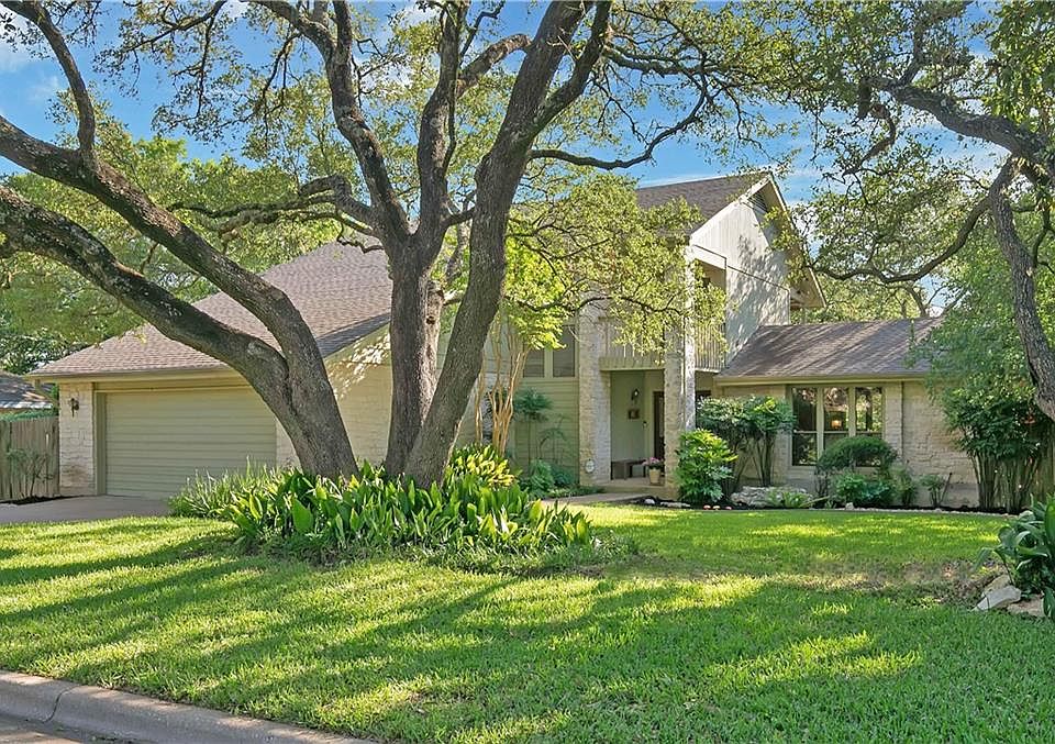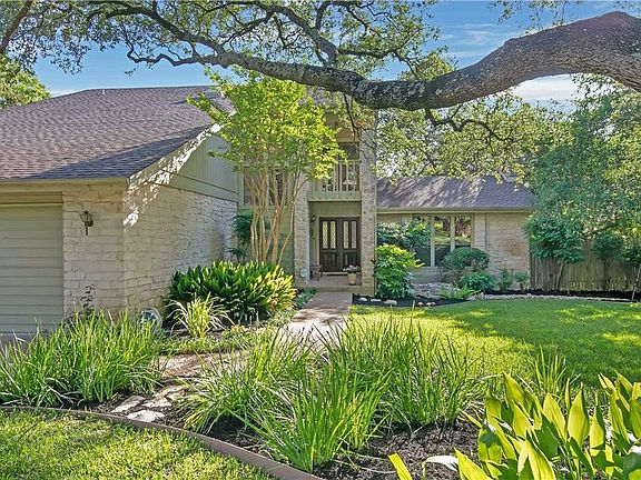 This updated home offers distinct living areas surrounded by towering live oaks, decks and balconies, a heated pool and hot tub and large backyard with vegetable garden seating. Unique propane stove, dual convection ovens and large island complete the chef's kitchen. Limestone hearth and a wood burning fireplace warms the living room, adjoining the dining area and wet bar. 4 bedrooms, 2.5 baths offer room to grow on this vibrant sidewalk lined street in Spicewood Estates and desirable Round Rock ISD.