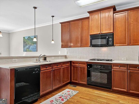 Welcome to this charming and well-maintained 3-bedroom, 2.5-bath townhome in the highly sought-after gated community of Abberley Township. This home offers a perfect blend of comfort, style, and convenience in one of Johns Creek's premier locations. Step inside to find lovely hardwood floors, crown molding, and abundant natural light throughout the main level. The open-concept layout provides a seamless flow between the living, dining, and kitchen areas - ideal for both everyday living and entertaining. You will also find plentiful storage in the garage as well as in the various closets throughout the home. Upstairs, the spacious primary suite features a tray ceiling, walk-in closet, and private bath. Each additional bedroom has its own en-suite bathroom, including a large lower-level suite with its own patio, perfect for guests or a private home office. Enjoy outdoor living on the newly redone composite deck, surrounded by mature trees for added privacy. Recent upgrades include a new roof, HVAC, water heater, and several triple-pane windows for improved energy efficiency. The community offers swim and tennis amenities, well-kept grounds, and convenient guest parking directly across from the home. Located just minutes from top-rated schools, shopping, dining, and major highways - schedule your tour today!