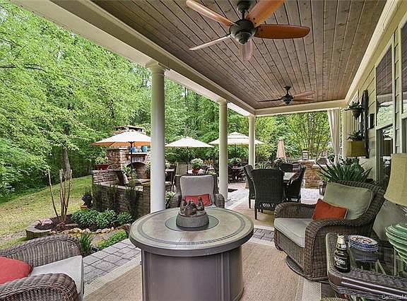 Shows like a model and priced to sell in highly sought after Skybrook North Villages! Private yard backs to Carolina Thread Trail with huge patio, covered porch, outdoor kitchen, and custom fireplace. Beautifully decorated with hardwood floors throughout. Upgraded kitchen with custom pantry, stainless steel appliances, granite with ogee edge, custom island, microwave, and breakfast room with french doors to patio. Large family room with custom built-ins, ceiling fan, and gas fireplace. Formal dining with box trim ceiling and butlers pantry. Custom mudroom drop zone. Study with custom built-in bar. Upstairs master bedroom with box trim ceiling, huge closet, split double vanities, tile, granite, garden tub, private toilet, and oversized shower. Upstairs laundry with sliding barn door and built-ins. 4th bedroom is being used as a bonus. Plantation shutters and hardwood stairs. Side load garage with courtyard style driveway. Covered front porch. Excellent location and schools!